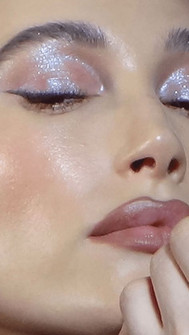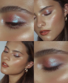 The main focus is the eyes. You want to use a dimensional liquid eyeshadow followed by a powdered white eyeshadow in the inner corners. Follow this by adding a smokey wing at the end of your eye. For the lips, go in with a very glossy mauve shade. Finish this look by adding a dewy setting spray.
