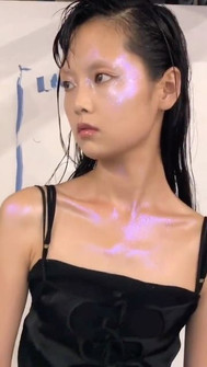 To get a dewy, glass skin base you want to start with an illuminating primer followed by a glowy lightweight foundation. For the glazed sparkling effect on the cheeks use a warm toned blush followed by a highlighter.